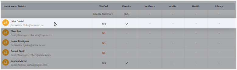 When you submit the "Add New User" form, your new user account will feature on the "User Account Details" list on the center of the page. The new user will be required to verify their email and activate their account by creating a password. Once activated, you will be able to assign licenses to the new user.